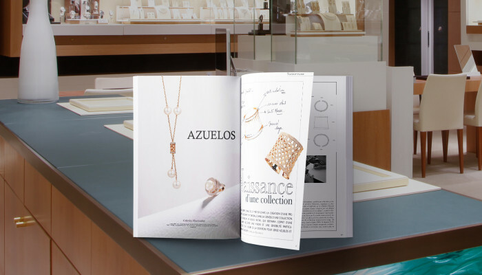 Entièrement dédié à l’univers du bijou et de l’horlogerie, “Azuelos Magazine” fait la part belle à la joaillerie marocaine d’aujourd’hui, à travers des reportages et de sublimes photographies de joyaux ; des invitations au rêve dans un monde tout de préciosité et de beau.