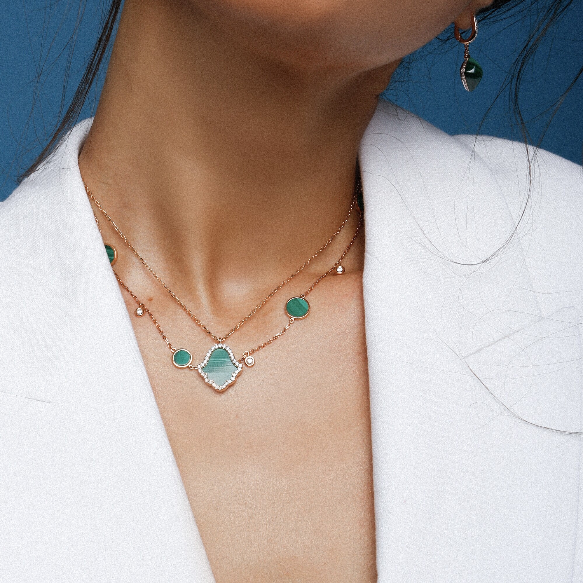 Khmissa Etc... pendant, pink gold, diamonds and malachite