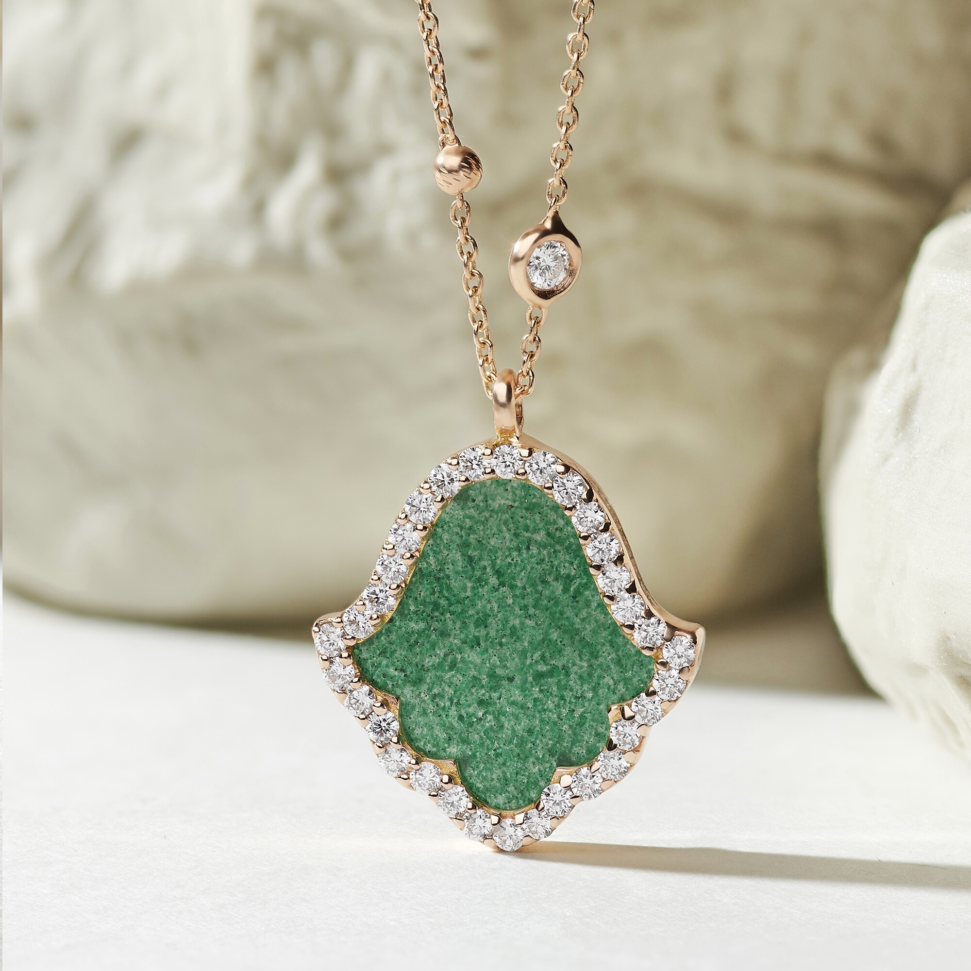 Khmissa Etc… necklace, rose gold, aventurine and diamonds