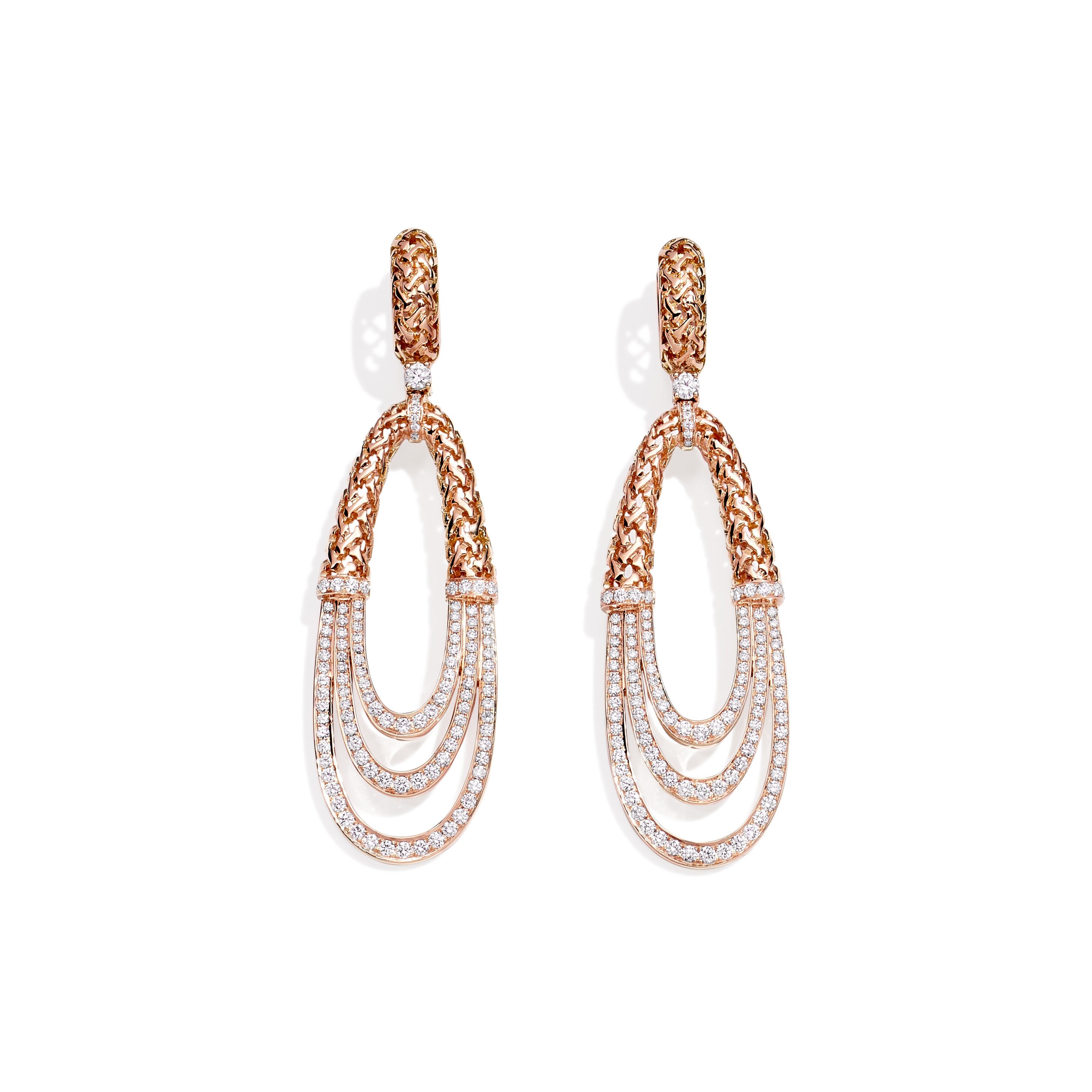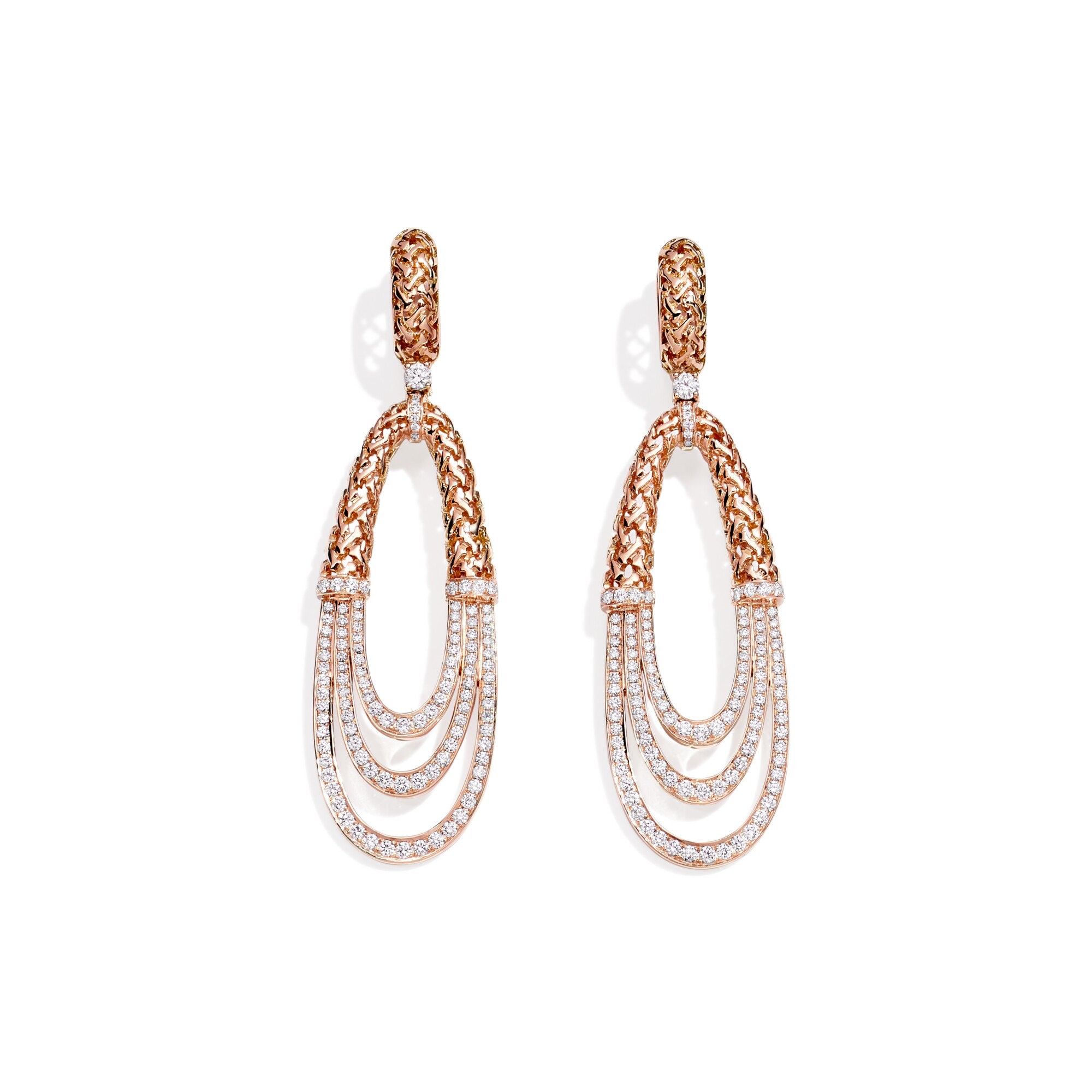Moucharabieh earrings, pink gold and diamonds