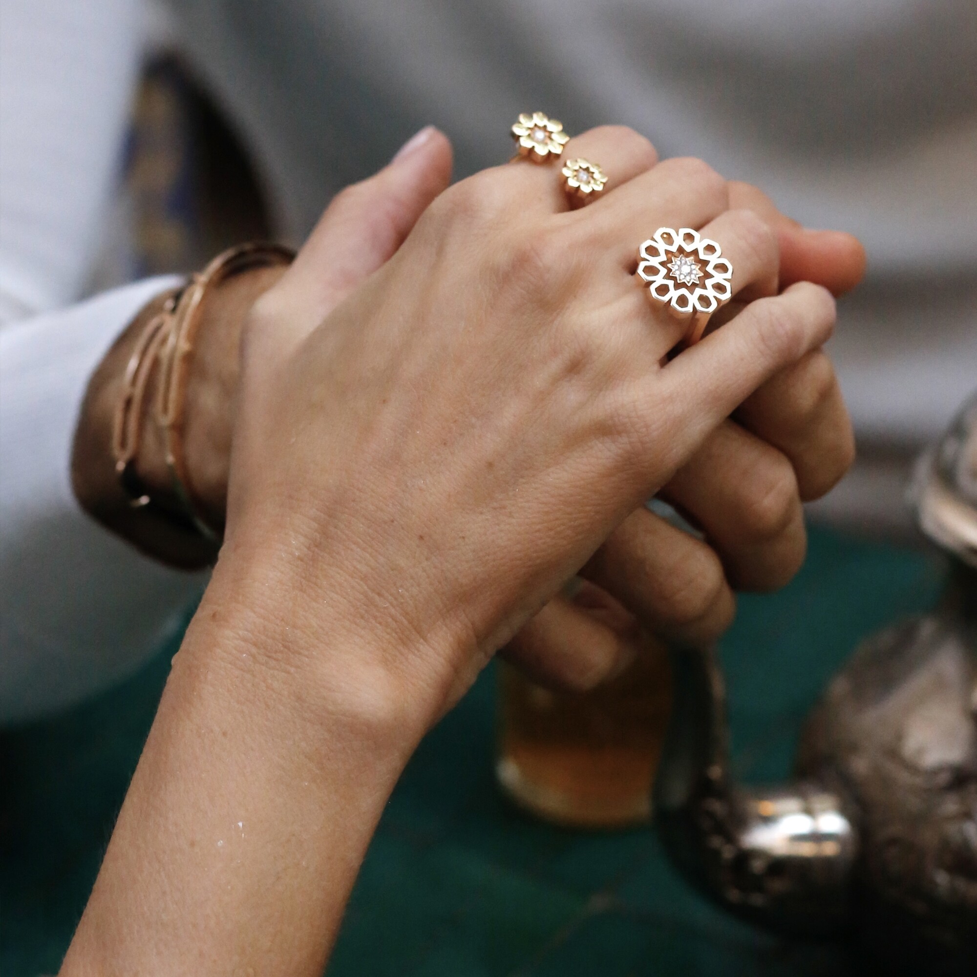 Zellij ring, rose gold and diamonds