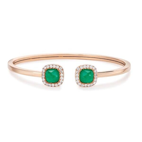 Bracelet jonc Moucharabieh en or rose, diamants et émeraude